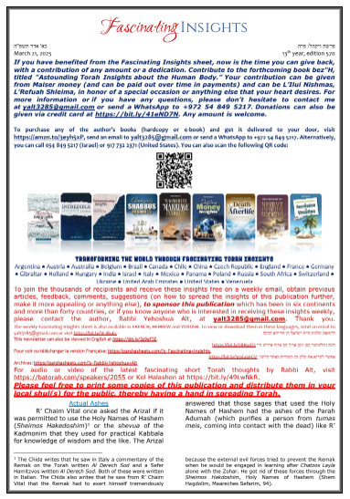 Fascinating Insights - Rabbi Yehoshua Alt - Vayakhel 5785 - English and French
